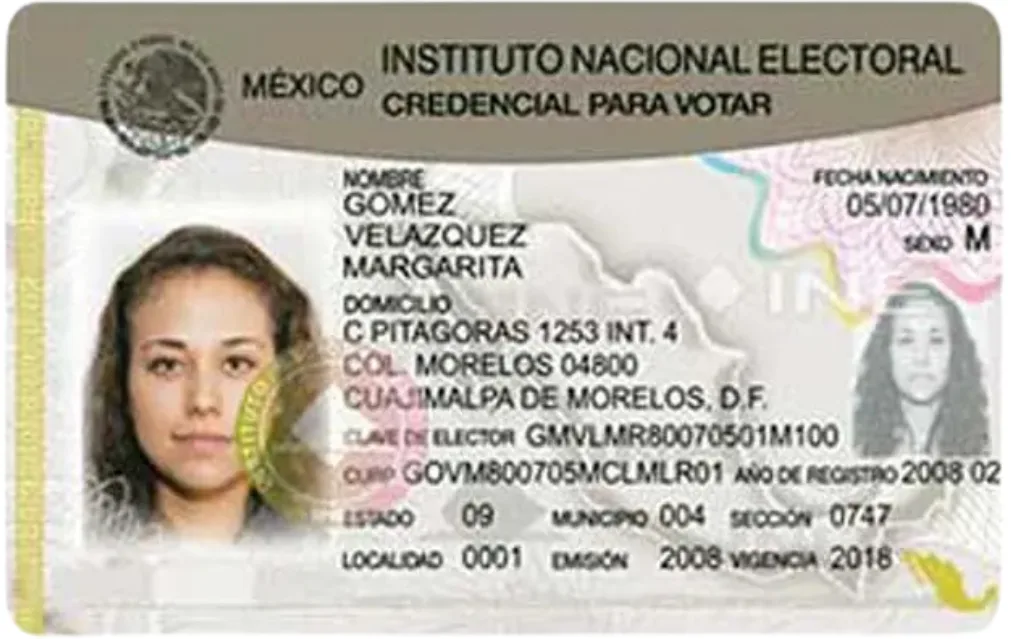 The Mexican voter card, or credencial para votar, issued by the National Electoral Institute (INE), is the most commonly used form of identification in Mexico. While primarily designed for voting, these cards serve as the de facto national ID and are widely accepted in banking, government, and business transactions. Because there’s a single national standard, voter cards are consistent across all states, making them relatively straightforward to verify.