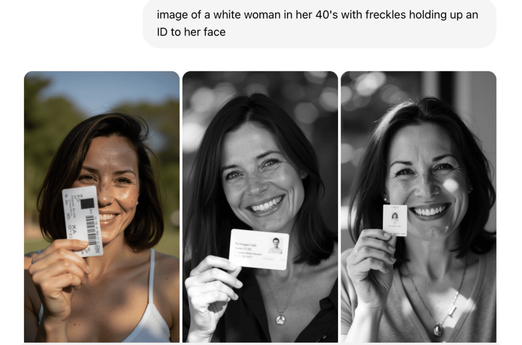 Tools like Krea.ai and MidJourney allow users to create images that blend visuals of the individual with the ID. These types of images are common for re-verification workflows for Uber, Facebook, etc. as they include both a visual of the individual (face) and the ID (document).