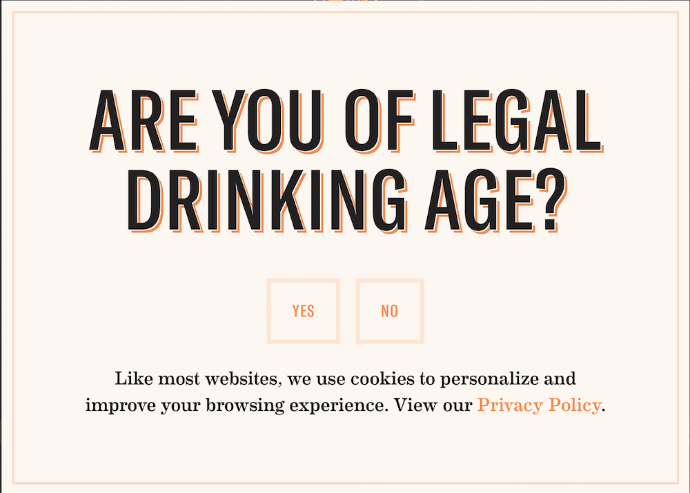 This type of age gate is obviously very easy for minors to bypass as it does not require any proof that they are above the legal age to purchase. However, it is inexpensive to implement and adds almost no friction to the interaction process.