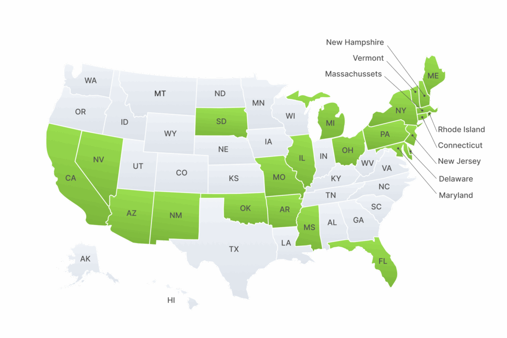 VeriScan is compatible with MMJ cards from the following states: Arizona, California, Connecticut, Florida, Illinois, Massachusetts, Maine, Maryland, Michigan, Mississippi, Missouri, Nevada, New Hampshire, New York, Oklahoma, Ohio, Pennsylvania, Vermont